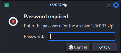 En essayant de dézipper ce fichier, un mot de passe nous est demandé bien évidemment : <br>