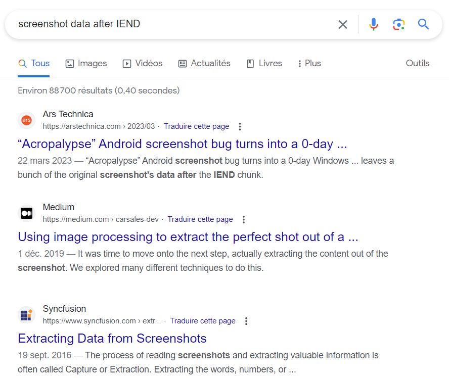 Le [premier résultat](https://arstechnica.com/information-technology/2023/03/windows-10-and-11-get-their-own-version-of-the-acropalypse-screenshot-bug/) provenant d'un blog à l'air intéressant.\