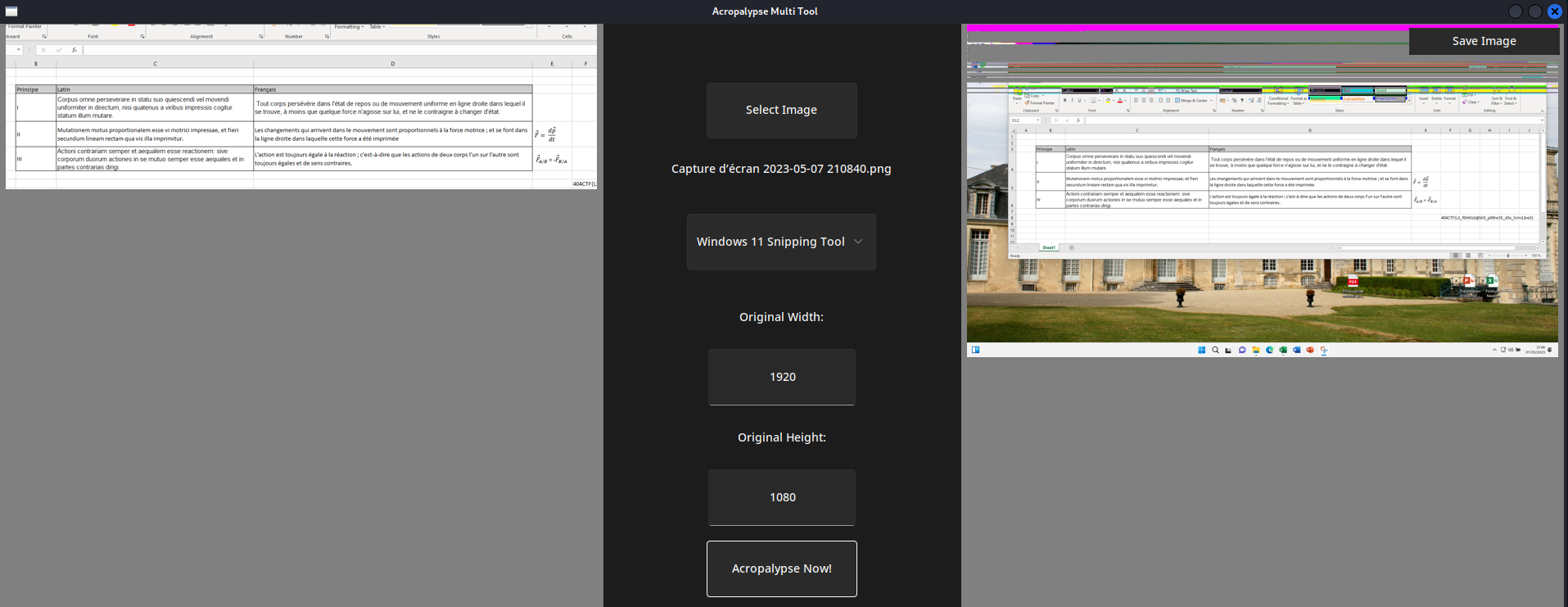 J'ai donc trouvé [ce repo](https://github.com/frankthetank-music/Acropalypse-Multi-Tool) (après avoir testé les autres) qui propose un outil vraiment très intéressant car nous avons simplement besoin d'uploader l'image et pas besoin de préciser les dimensions originales de l'image comme les autres demandaient.