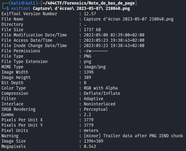 Avec l'outil exiftool nous voyons qu'il détecte une erreur de *IEND* chunck dans l'image :&#x20;