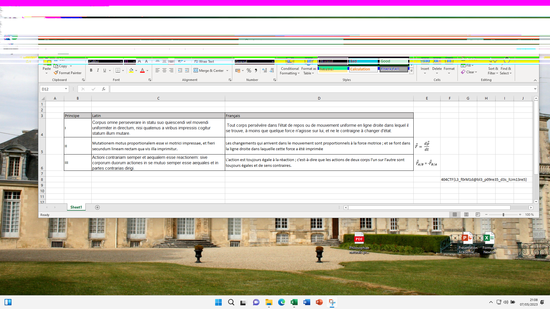 Dans ce dernier mail, nous voyons qu'elle écrit à son ami en mettant en pièce jointe une capture d'écran d'un fichier Excel où nous pouvons d'ailleurs voir le début du flag (en bas à droite) : &#x20;