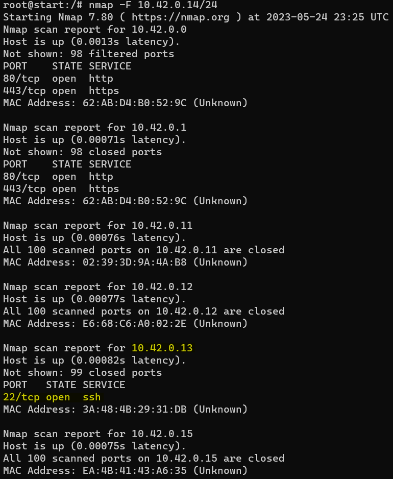 L'adresse ayant le service SSH en marche dessus est la suivante : 10.42.0.13\