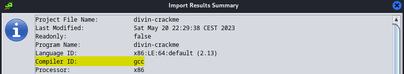 Maintenant nous allons passer à l'analyse du programme divin-crackme.\