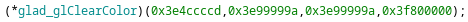En regardant son code, nous remarquons très rapidement une partie avec le terme *`glad_glClearColor`* suivi de 4 valeurs qui sont surement nos valeurs rgba :&#x20;