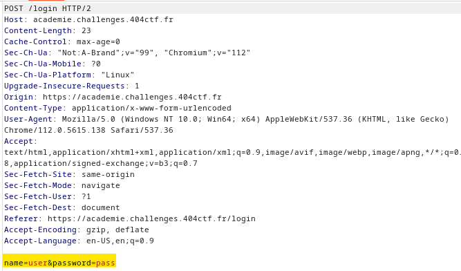 Nous constatons que quoi que nous mettons dans le *name* et le *pass* de la requête POST nous parvenons à nous connecter sans soucis, sauf quand name à pour valeur *admin*.\