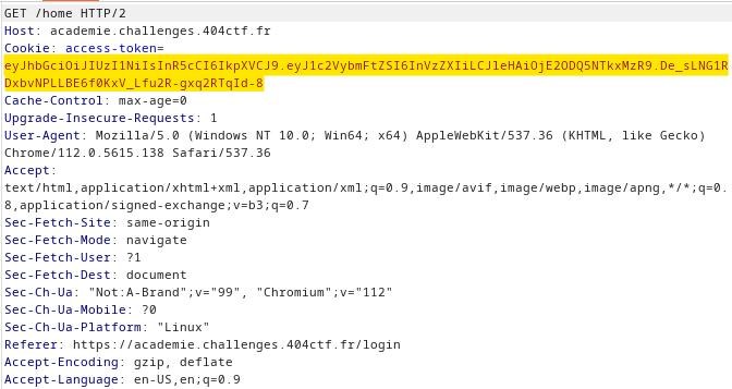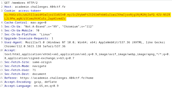 Une fois le token reconstitué sur [jwt.io](https://jwt.io/), nous allons le changer directement au moment de la requête à l'aide du proxy de Burp Suite :&#x20;