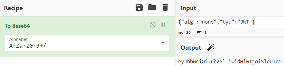 Nous pouvons donc faire ça. Avec jwt.io, il est compliqué de le faire alors nous allons le faire à la main avec un convertisseur en B64 :&#x20;