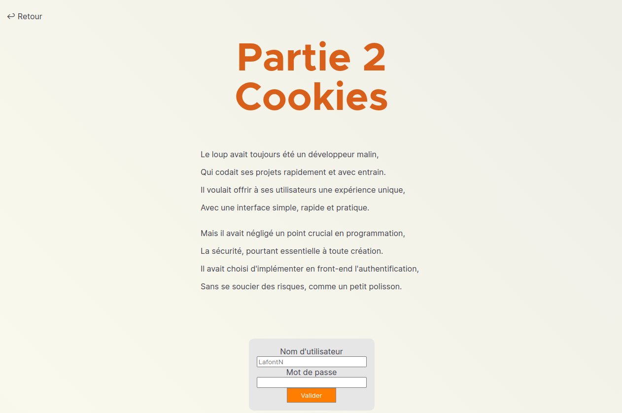Sur cette partie, nous savons qu'il va falloir modifier un cookie pour passer à la suite.\