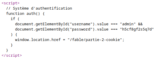 Pour cette partie, nous devons simplement aller chercher dans le code source de la page le nom d'utilisateur ainsi que le mot de passe à utiliser pour passer à la suite :&#x20;